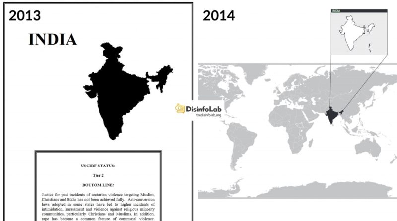 The 2013 map of India vs the map that was used in the 2014 report. Photo: thedisinfolab.org