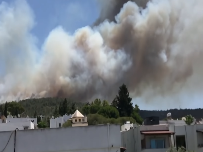 Panic-stricken tourists were evacuated from a village in Bodrum, a popular district in Mugla, said reports.