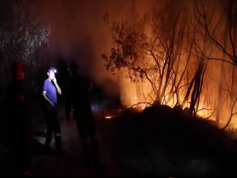 The report said local television footage showed people fleeing across fields to escape the approaching flames.
