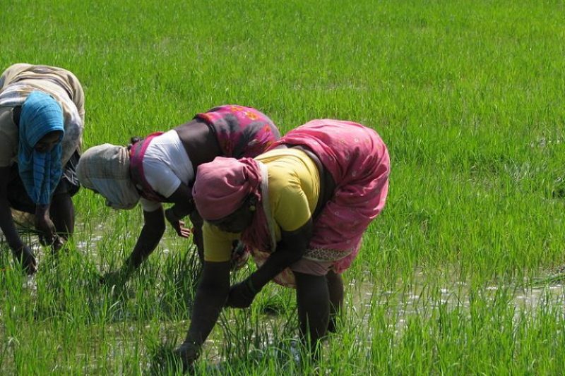Women working hard to plant the spring harvest of rice paddy in Kancheepuram district, Tamil Nadu. Photo by McKay Savage/Wikimedia Commons/Mongabay India