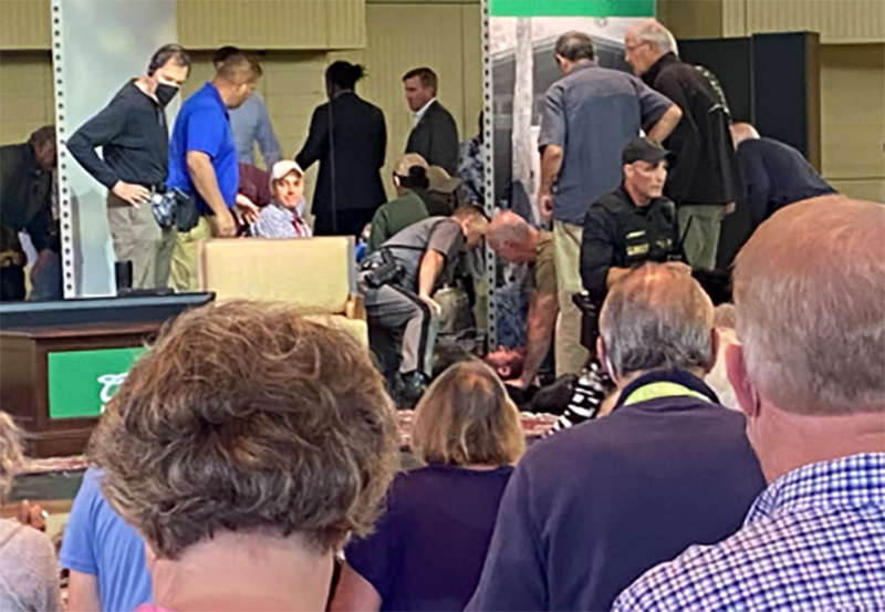 After the actual act came to light, the institution and audience members rushed the suspect and took him to the ground.