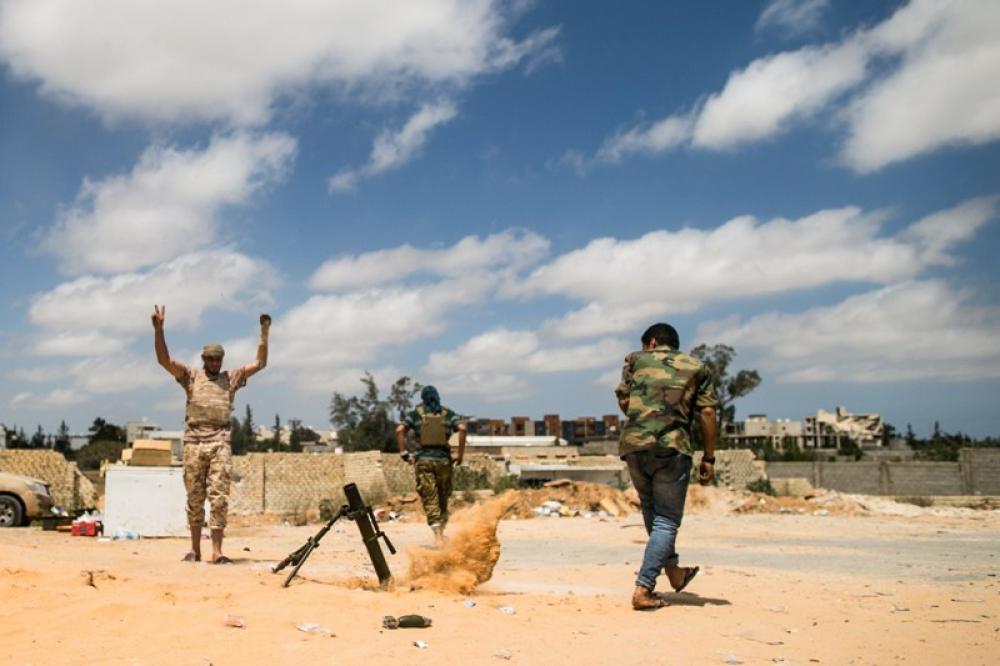 TRIPOLI, May 7, 2019 (Xinhua) -- Fighters from forces of the UN-backed Libyan government are seen during clashes in Salah Al-Din frontline, Tripoli, Libya, on May 6, 2019. A total of 432 people have been killed and 2,069 others injured in the fighting between the UN-backed Libyan government and the east-based army in and around the capital Tripoli, the World Health Organization (WHO) said Monday.