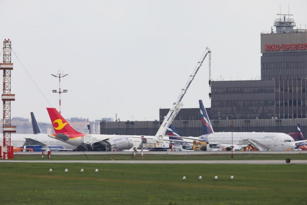 MOSCOW, May 7, 2019 (Xinhua) -- Burnt fuselage of an Aeroflot SSJ-100 passenger plane is seen on the tarmac at Sheremetyevo International Airport in Moscow, Russia, on May 6, 2019. Russias Investigative Committee confirmed Monday that 41 people were killed after an SSJ-100 passenger plane en route to the northwestern Russian city of Murmansk caught fire before an emergency landing Sunday at the Sheremetyevo International Airport in Moscow.