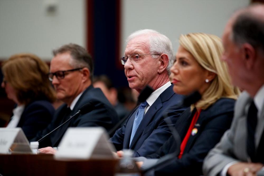 WASHINGTON, June 20 (Xinhua) -- Retired airline captain Chesley Sullenberger (C) testifies during the hearing on Status of the Boeing 737 MAX: Stakeholder Perspectives on Capitol Hill in Washington D.C., the United States, on June 19, 2019.