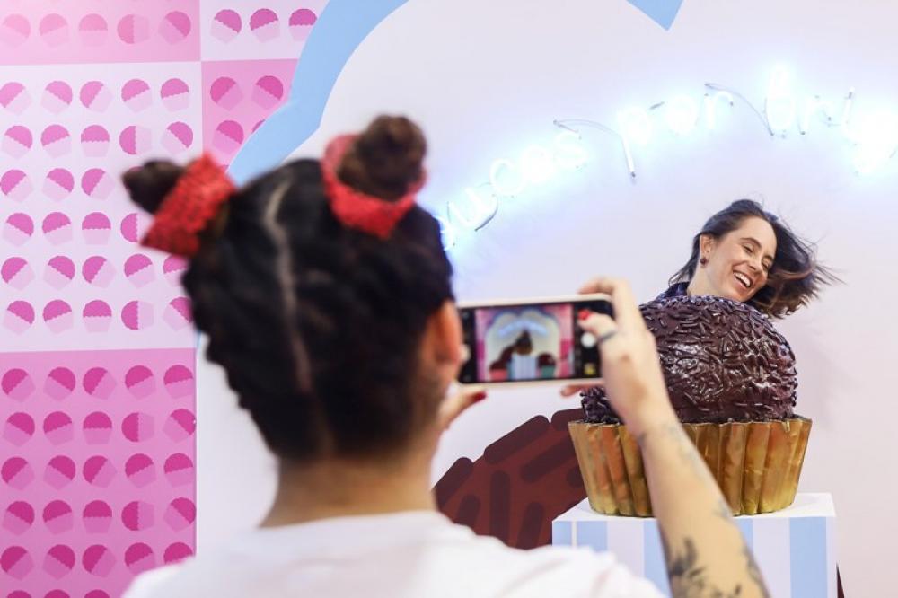 SAO PAULO, June 20 (Xinhua) -- Visitors take photos at the Sweet Art Museum installation art exhibition in Sao Paulo, Brazil, June 19, 2019. The exhibition will open to the public on June 20 and will last to late August.