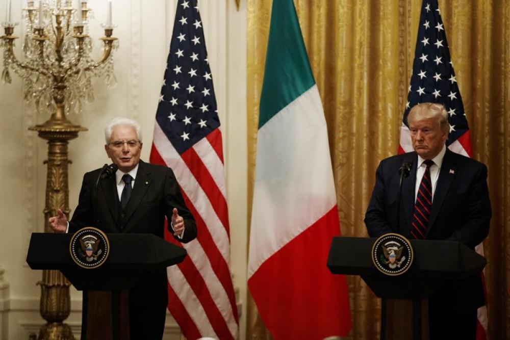 WASHINGTON D.C., Oct. 17, 2019 (Xinhua) -- U.S. President Donald Trump (R) and visiting Italian President Sergio Mattarella attend a joint press conference at the White House in Washington D.C., the United States, on Oct. 16, 2019. (Photo by Ting Shen