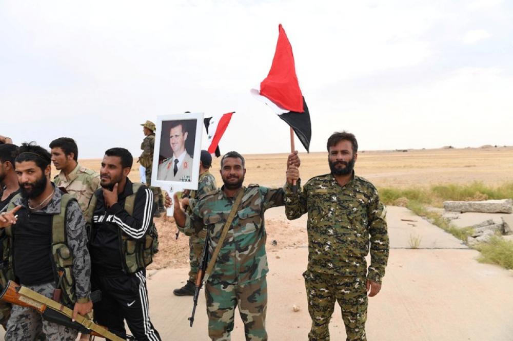 RAQQA (SYRIA), Oct. 17, 2019 (Xinhua) -- Syrian soldiers are seen inside the Tabqa airbase in the Tabqa city of Raqqa province in northern Syria on Oct. 16, 2019. The Syrian army has entered the city of Tabqa in the northern countryside of Raqqa Province, as part of the Syrian armys move to enter Kurdish-held areas to counter the ongoing Turkish assault in the region.