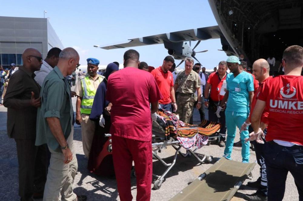 MOGADISHU, Dec. 29, 2019 (Xinhua) -- Medical workers transport the wounded at an airport in Mogadishu, capital of Somalia, Dec. 29, 2019. A suicide car bombing in Somalias capital city on Saturday have left at least 79 dead, 149 others injured so far. And Somali and UN leaders have condemned the terrorist attack.