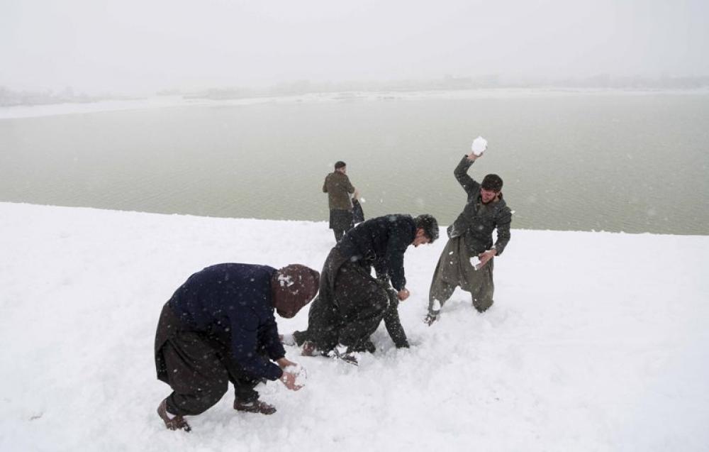 KABUL, Jan. 3, 2020 (Xinhua) -- People play with snow during snowfall in Kabul, capital of Afghanistan, Jan. 2, 2020. Heavy snowfall that continued Thursday in Kabul have created problems for the citys traffic but provided joy to some citizens.
