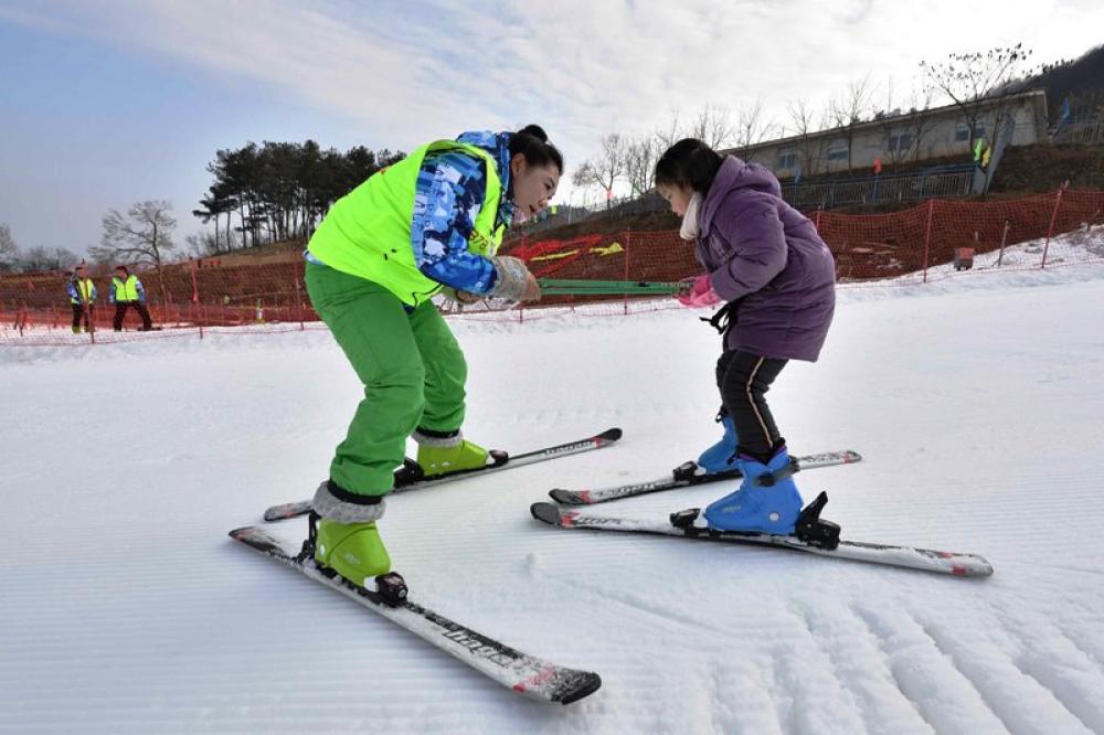 TANGSHAN, Jan. 4, 2020 (Xinhua) -- A girl (R) practices skiing under a coachs guidance at a skiing ground in Guoduwan Township of Baokang County, Xiangyang, central Chinas Hubei Province, Jan. 4, 2020.