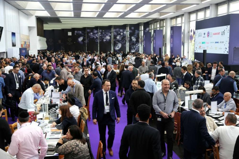.RAMAT GAN (ISRAEL), Feb. 11 (Xinhua) -- People take part in the International Diamond Week in Israel (IDWI) in Ramat Gan, Israel, on Feb. 10, 2020. The IDWI opened on the huge trading floor of the Israel Diamond Exchange on Monday in Ramat Gan. Hundreds of Israeli and international diamond companies attend the event which will be concluded on Feb. 12, 2020.