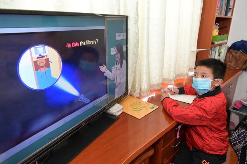 NANCHANG, Feb. 11 (Xinhua) -- Gao Xunxuan, a student of No.4 Primary School in Wanli District, attends an online class at home in Nanchang City, east Chinas Jiangxi Province, Feb. 10, 2020. As schools across the country are required to postpone the opening of the spring semester, students in Jiangxi Province have been encouraged to study at home in various ways.