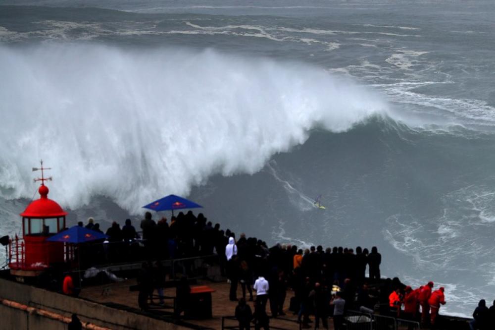 NAZARE, Feb. 12 (Xinhua) -- Nic von Rupp of Portugal competes during the Nazare Tow Surfing Challenge at Praia do Norte in Nazare, Portugal on Feb. 11, 2020.