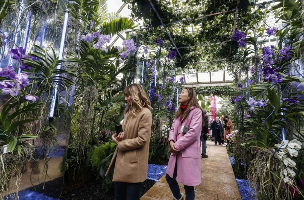 GLENCOE (U.S.), Feb. 28, 2020 (Xinhua) -- Visitors view orchids during the Orchid Show at the Chicago Botanic Garden in Glencoe of Illinois, the United States, on Feb. 27, 2020. The Orchid Show is held here from Feb. 8 to March 22.