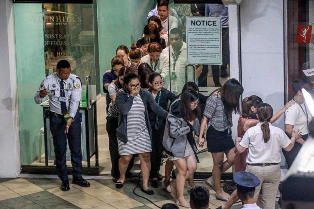 MANILA, March 2, 2020 (Xinhua) -- A security guard leads hostages to safety as they are freed during the shooting and hostage-taking incident in San Juan City, Metro Manila, the Philippines on March 2, 2020. The Philippine police ended a 10-hour hostage incident in Metro Manila on Monday, convincing the gunman to free all the hostages and surrender himself to the authorities. Around 30 people taken hostage by the gunman were released and left the V-Mall in the San Juan City of Metro Manila.