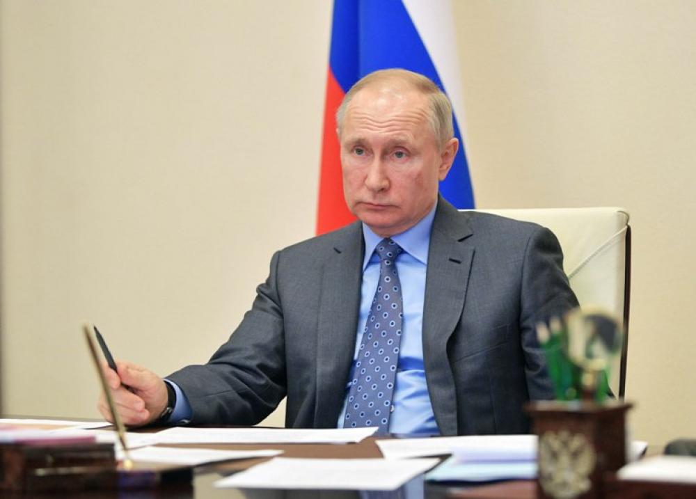 MOSCOW, April 2, 2020 (Xinhua) -- Russian President Vladimir Putin holds a video conference with members of the Russian government at Novo-Ogarevo residence, outside Moscow, Russia, April 1, 2020.