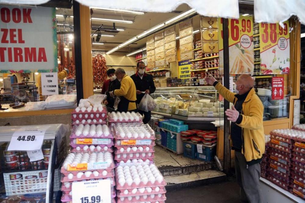 ANKARA, April 23 (Xinhua) -- People wearing face masks shop for the upcoming Ramadan at the Grand Bazaar in Ankara, Turkey, April 22, 2020. Turkish Health Minister Fahrettin Koca on Wednesday confirmed 3,083 new COVID-19 cases and 117 more deaths in Turkey for the past 24 hours. The total number of confirmed COVID-19 cases in Turkey increased to 98,674, while the death toll surged to 2,376, Koca said at a press conference.