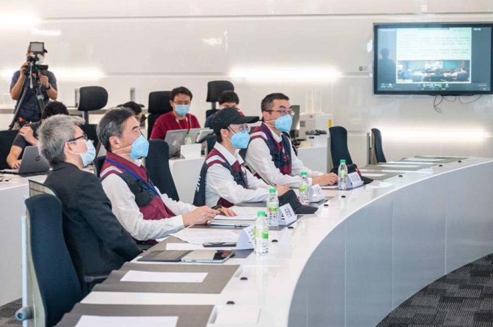 KUALA LUMPUR, April 23 (Xinhua) -- Members of the Chinese anti-COVID-19 medical consultant expert team attend a video conference with Malaysias traditional Chinese medicine (TCM) associations, practitioners and companies on Chinas experiences in applying TCM in the fight against COVID-19, in Kuala Lumpur, Malaysia, April 22, 2020. Three members of the Chinese anti-COVID-19 medical consultant expert team briefed some 200 participants in a video conference on Chinas experiences in applying TCM in the fight against COVID-19, including prevention and as complimentary treatment.