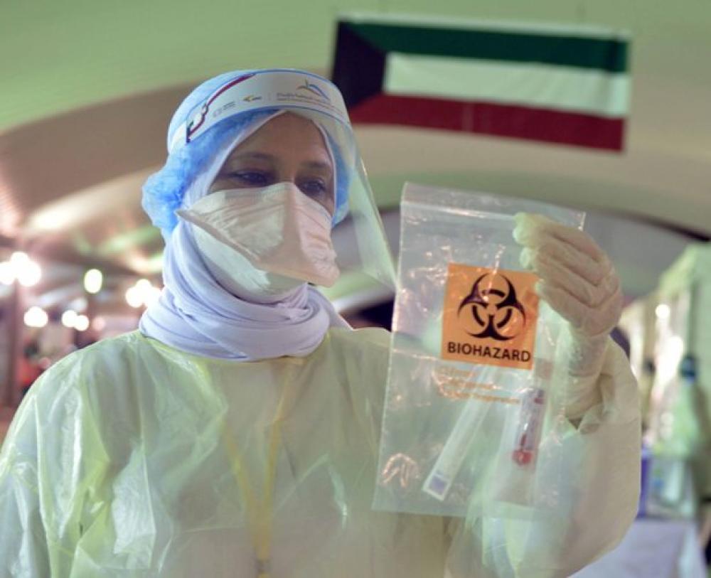 FARWANIYA GOVERNORATE, May 18 (Xinhua) -- A medical worker carries a sample taken from a driver at the drive-through coronavirus testing center in Farwaniya Governorate, Kuwait, May 16, 2020. Kuwait has launched its first drive-through coronavirus testing center at the Kuwait International Airport to beef up the countrys COVID-19 testing capability.