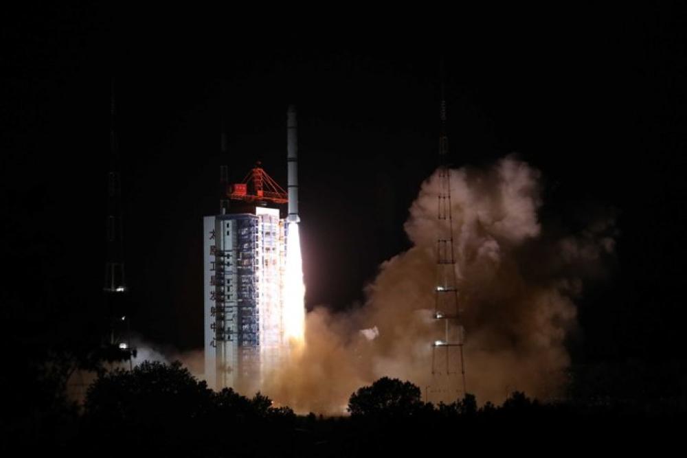 TAIYUAN, June 11 (Xinhua) -- A Long March-2C rocket, carrying the satellite HY-1D, is launched from the Taiyuan Satellite Launch Center, north Chinas Shanxi Province, June 11, 2020. China successfully sent an ocean observation satellite into orbit on Thursday. The new satellite will form Chinas first satellite constellation for marine civil service together with HY-1C, which was launched in September 2018.