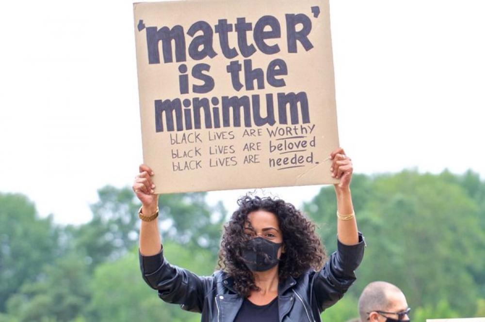 AMSTERDAM, June 11 (Xinhua) -- A woman participates in a protest against racism in Amsterdam, the Netherlands, June 10, 2020.