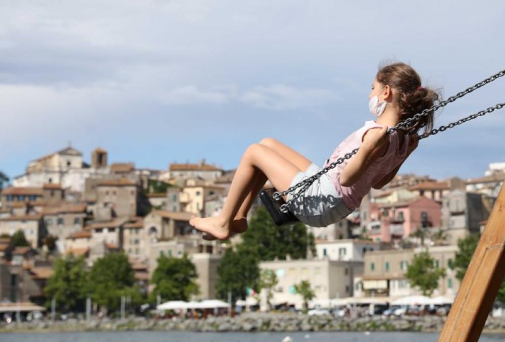 ROME, June 17, 2020 (Xinhua) -- A girl swings by Lake Bracciano in Anguillara Sabazia near Rome, Italy, on June 16, 2020. Italys number of COVID-19 patients in the Intensive Care Units (ICU) dropped to 177 on Tuesday, down from 207 on Monday, the countrys Civil Protection Department said.