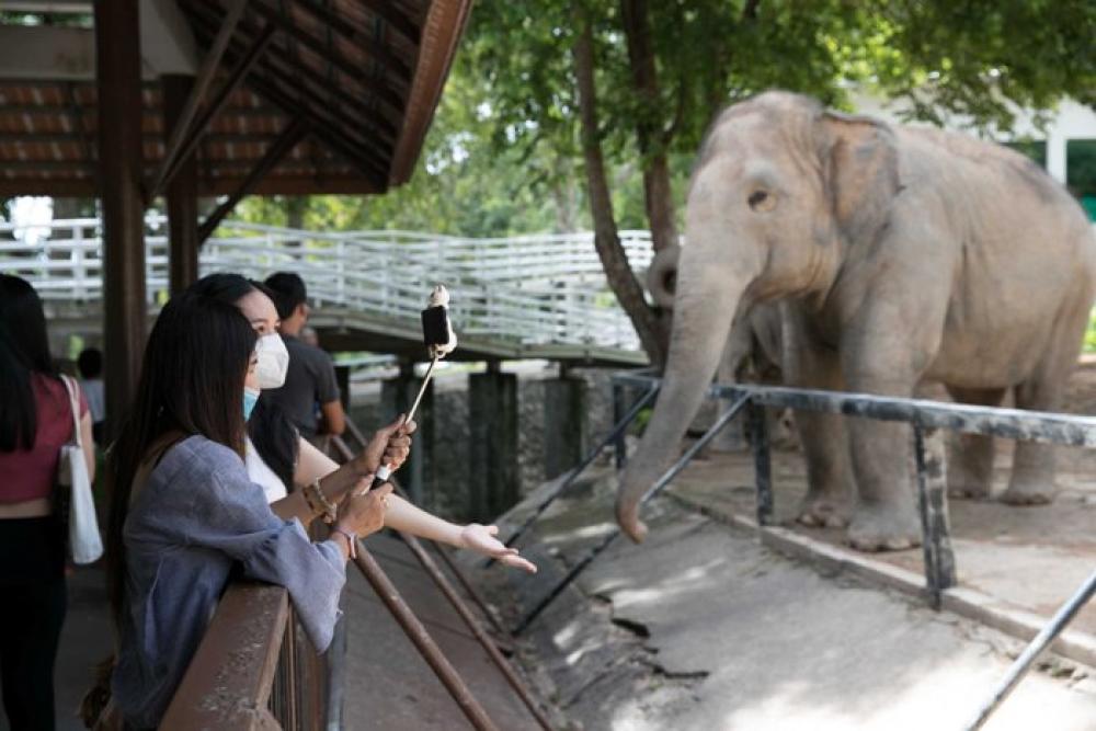 BANGKOK, June 17, 2020 (Xinhua) -- Visitors take photos of an elephant at Khao Kheow Open Zoo in Chonburi province in Thailand, June 16, 2020. Six zoos in Thailand will reopen for visitors free of charge from June 15 to 30.