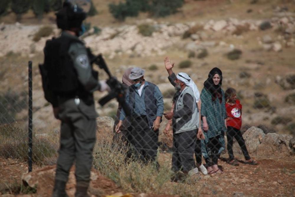 HEBRON, June 19, 2020 (Xinhua) -- Palestinians protest after Israeli military demolished two tents that were used as homes by Palestinians, in the southern West bank city of Hebron, June 18, 2020.
