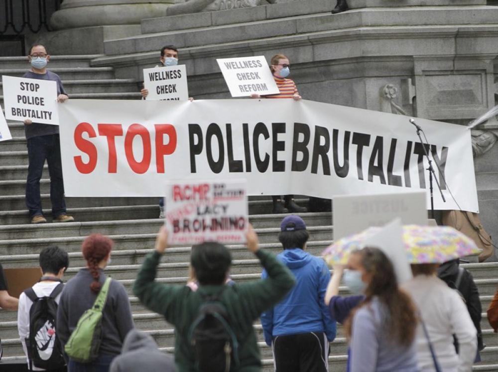 VANCOUVER, July 12, 2020 (Xinhua) -- People participate in the anti police brutality rally in Vancouver, British Columbia, Canada, July 11, 2020. Thousands of people in several cities in British Columbia took part in the anti police brutality rally on Saturday.