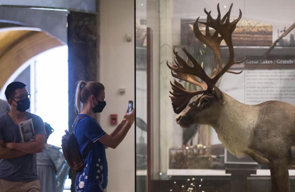 TORONTO, July 12, 2020 (Xinhua) -- People wearing face masks visit the Royal Ontario Museum (ROM) in Toronto, Canada, on July 11, 2020. After a 4-month shutdown, the Royal Ontario Museum reopened to the public starting on Saturday, with visitors required to wear face masks or face coverings.