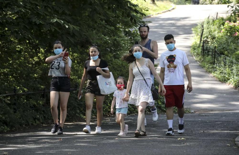 NEW YORK, July 14 (Xinhua) -- People visit Central Park in New York, the United States, on July 13, 2020. Global confirmed COVID-19 cases topped 13 million on Monday, reaching 13,006,764 as of 4:34 p.m. local time (2034 GMT), according to the Center for Systems Science and Engineering at Johns Hopkins University. The United States suffered the most from the pandemic, with 3,346,246 cases and 135,477 fatalities.