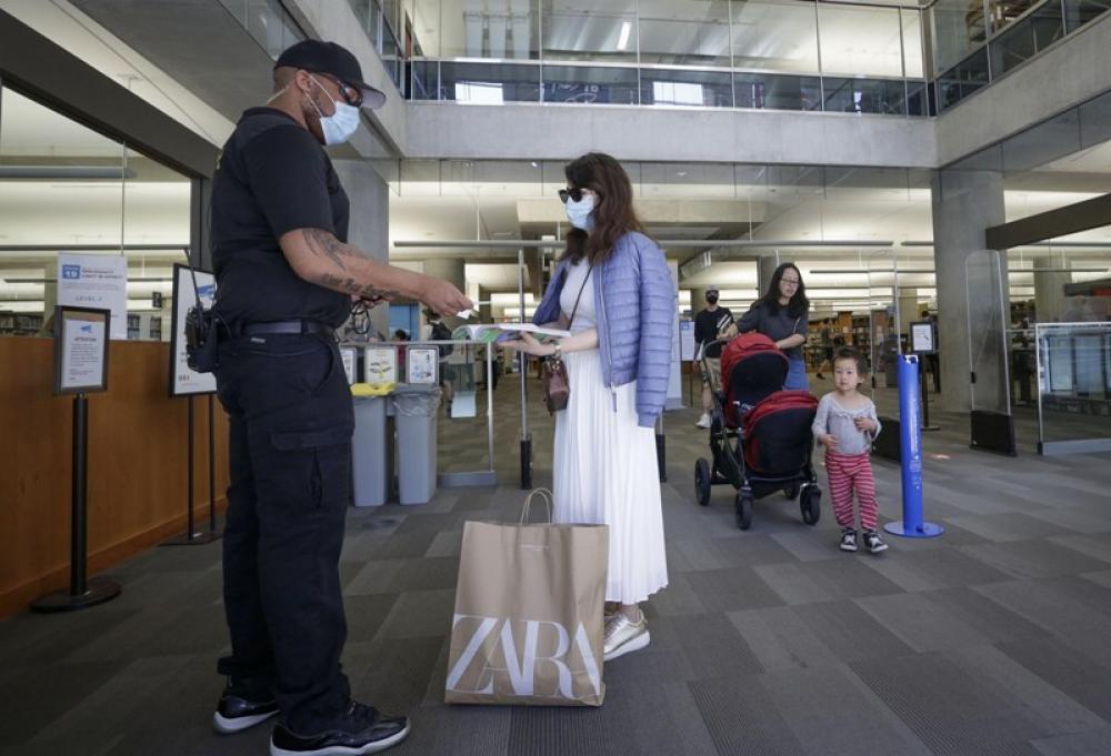 VANCOUVER, July 15, 2020 (Xinhua) -- People visit the Central Library of Vancouver Public Library (VPL) in Vancouver, British Columbia, Canada, July 14, 2020. After being closed since mid-March due to the COVID-19 pandemic, the VPLs Central Library reopened to public on Tuesday with a series of health safety protocols in place.