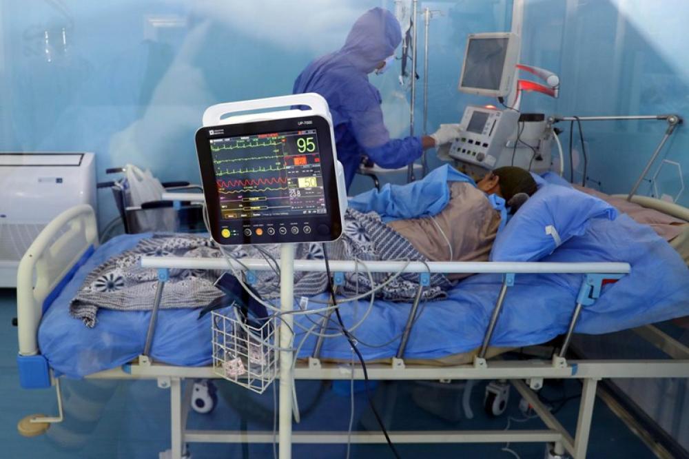 . CAIRO, July 15, 2020 (Xinhua) -- A medical worker checks the condition of a patient at a hospital in Cairo, Egypt, on July 14, 2020. Egypt on Tuesday confirmed 929 new COVID-19 infections, raising the total cases to 83,930, said Egyptian Health Ministry.