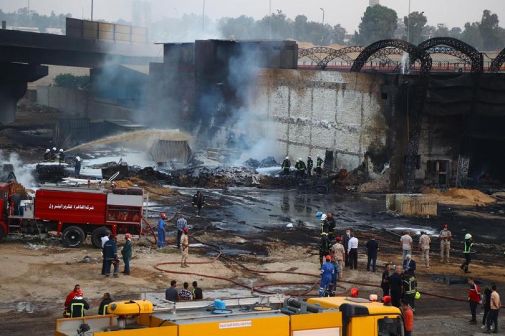 .CAIRO, July 15, 2020 (Xinhua) -- People work at the site of a crude oil pipeline fire in Cairo, Egypt, on July 14, 2020. A dozen of people were injured on Tuesday in a crude oil pipeline fire in the Egyptian capital Cairo, Egyptian Health Ministry said.