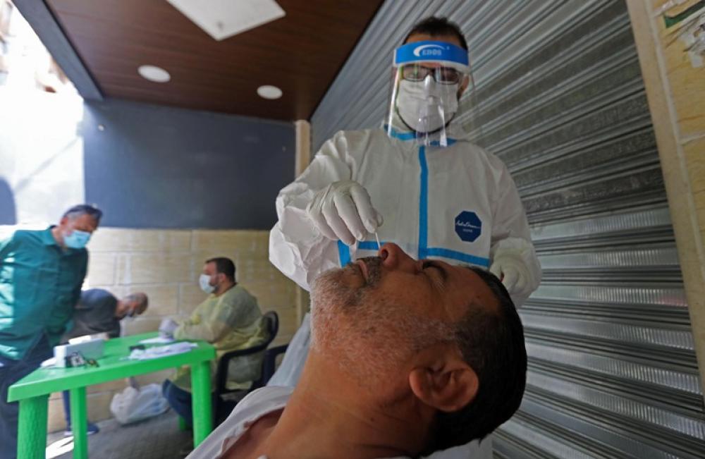 BEIRUT, July 15, 2020 (Xinhua) -- A medical worker conducts a polymerase chain reaction (PCR) test for COVID-19 in Beirut, Lebanon, July 14, 2020. Lebanons number of COVID-19 infections increased on Tuesday by 32 cases to 2,451 while death toll went up by one to 37, the National News Agency reported.