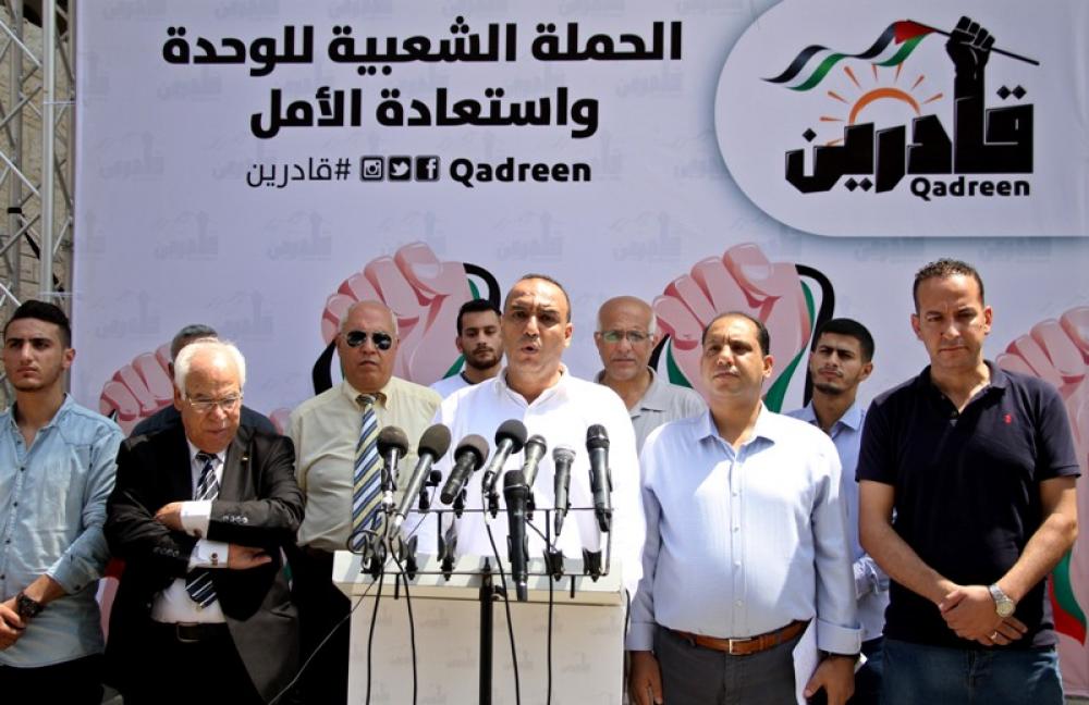 GAZA, July 27, 2020 (Xinhua) -- People attend a press conference in Gaza City, on July 26, 2020. Dozens of Palestinians, mostly young people, launched on Sunday a campaign to urge Palestinian President Mahmoud Abbas Fatah party and Hamas, ruler of the Gaza Strip, to achieve national reconciliation to confront the rising threat of the Israeli government.
