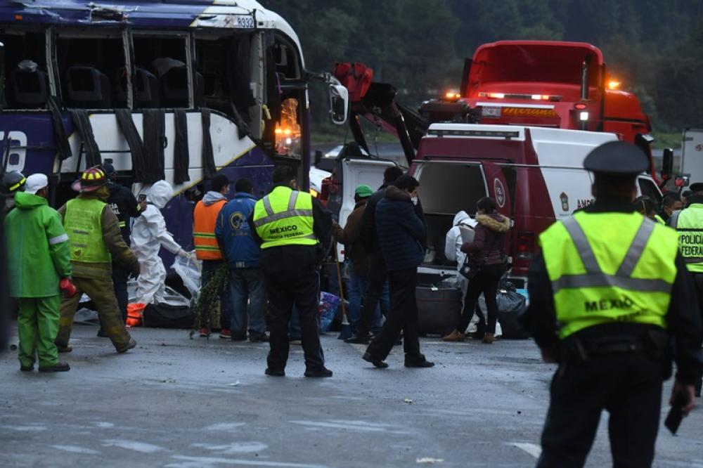 TOLUCA, Aug. 12, 2020 (Xinhua) -- Photo taken on Aug. 11, 2020 shows the site of a bus crash accident near Ocoyoacac, a suburb of Toluca, Mexico. At least 13 people were killed and 24 were injured on Tuesday after their passenger bus turned over just north of Mexico City, local authorities reported. According to the authorities, the bus was traveling from the Pacific Coast resort of Acapulco, in southern Guerrero state, toward the western state of Jalisco.