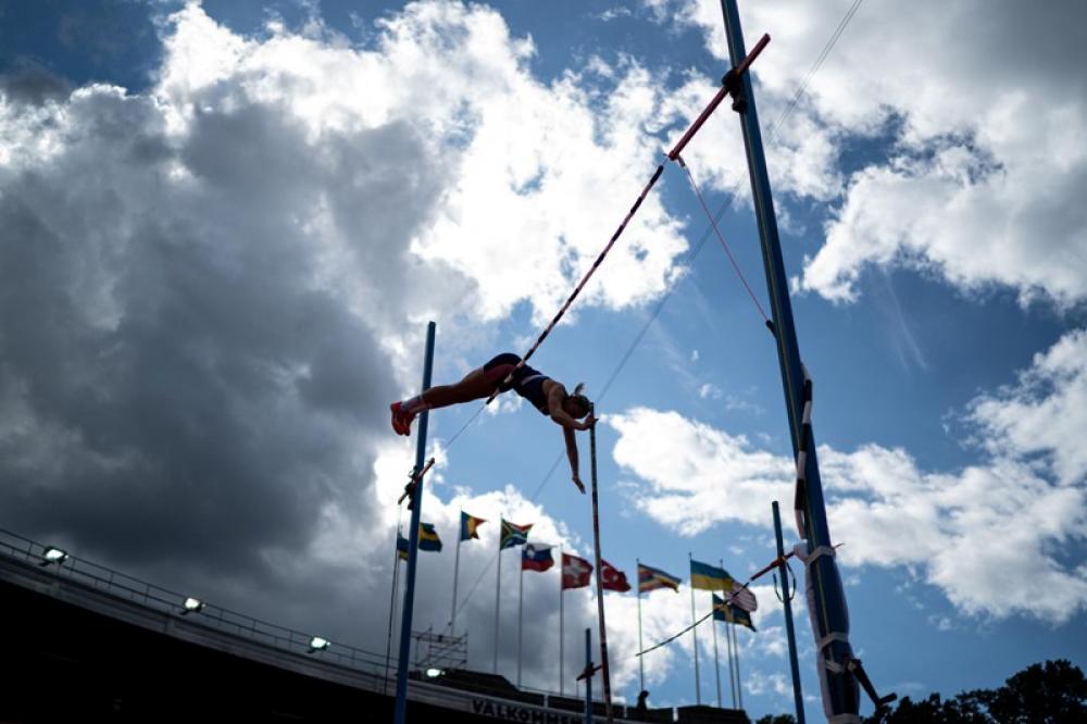 STOCKHOLM, Aug. 24, 2020 (Xinhua) -- Holly Bradshaw of Britain competes during the womens pole vault at 2020 Diamond League Athletics Meeting in Stockholm, Sweden, Aug. 23, 2020.
