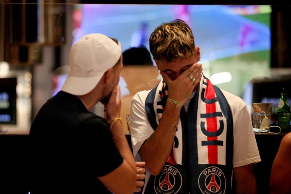 LISBON, Aug. 24, 2020 (Xinhua) -- Paris Saint-Germains supporters react at Mercado da Ribeira in Lisbon as they watch a live broadcast of the UEFA Champions League final football match between Paris Saint-Germain and Bayern Munich played behind closed doors at Estadio do Sport Lisboa e Benfica in Lisbon, Portugal on August 23, 2020.