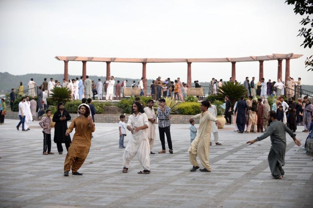 ISLAMABAD, Aug. 24, 2020 (Xinhua) -- Tourists dance at the Lake View Park in Islamabad, capital of Pakistan on Aug. 23, 2020, after the government recently eased COVID-19 restrictions.