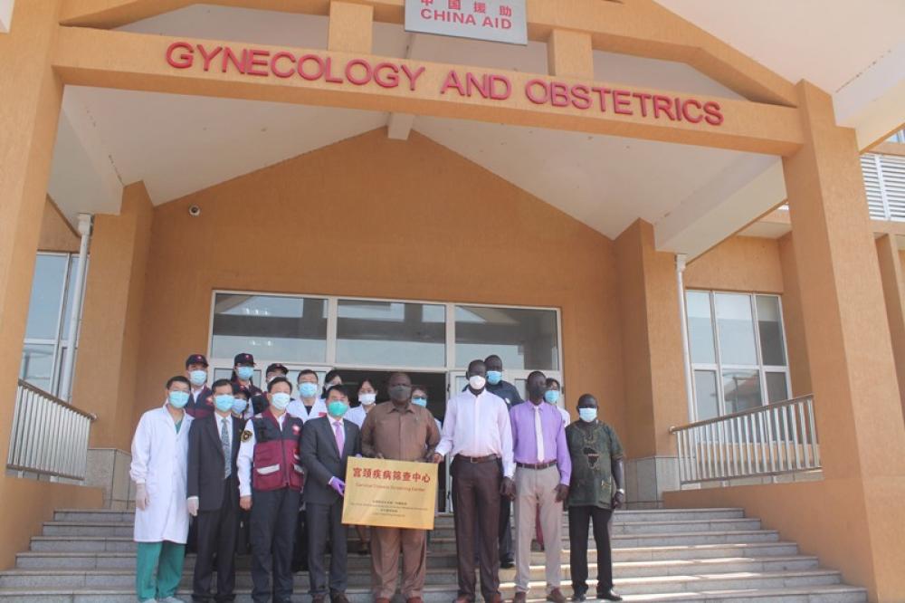 JUBA, Aug. 26, 2020 (Xinhua) -- Chinese medical workers and South Sudanese officials pose for a photo during the inauguration ceremony of a cancer screening facility in Juba, South Sudan, on Aug. 25, 2020. South Sudan on Tuesday inaugurated a cancer screening facility whose construction was supported by the Chinese government. China has provided material and technical support to South Sudan to help the worlds youngest nation deal with health-related challenges.