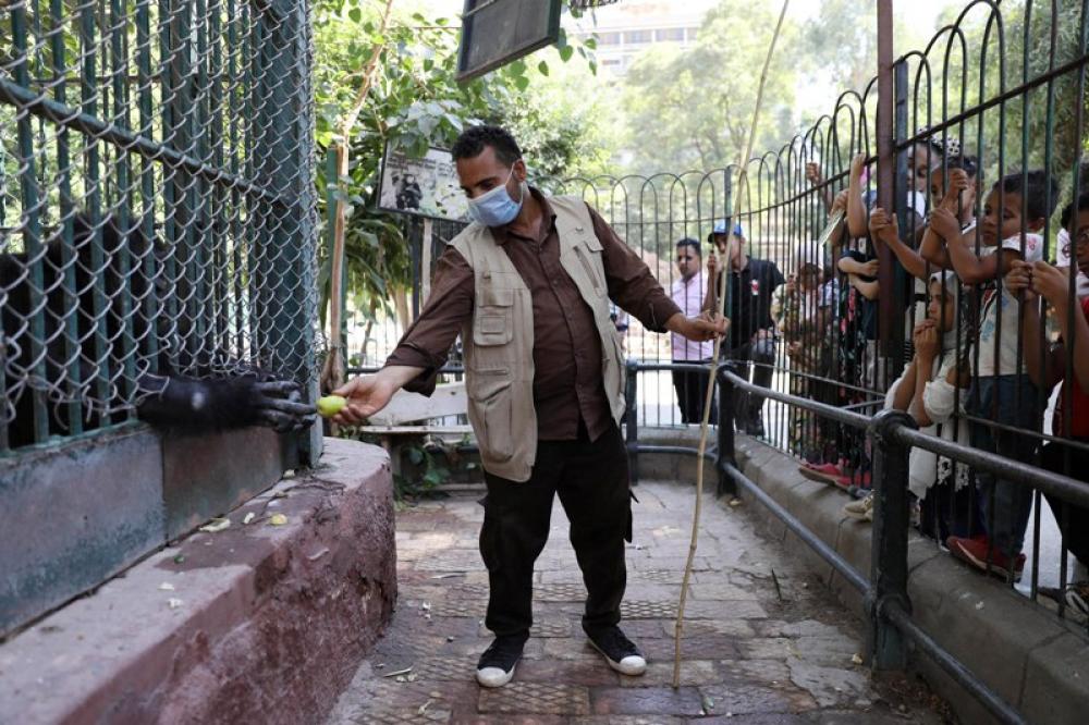 GIZA, Aug. 26, 2020 (Xinhua) -- A staff member feeds a gorilla at the Giza Zoo which has reopened amid the COVID-19 pandemic in Giza, Egypt, Aug. 25, 2020. Egypt reported on Tuesday 141 new infections and 18 deaths of COVID-19, bringing the total cases registered in the country to 97,619, including 5,298 deaths, said the Egyptian health ministry.