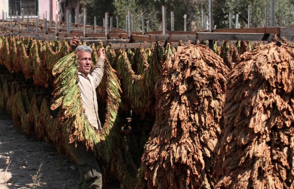 JENIN, Aug. 25, 2020 (Xinhua) -- A Palestinian farmer dries tabacco leaves at a farm in Yaabed village near the West Bank city of Jenin, on Aug. 25, 2020.