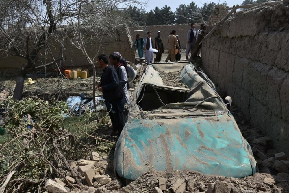 MAZAR-I-SHARIF, Aug. 25, 2020 (Xinhua) -- Photo taken on Aug. 25, 2020 shows a damaged car at the site of a blast in Balkh province, Afghanistan. Six people, including an assailant, were killed and 32 people wounded after a Taliban militants suicide truck bomb blast took place outside a special forces camp in northern Afghanistans Balkh province on Tuesday, an army source confirmed.