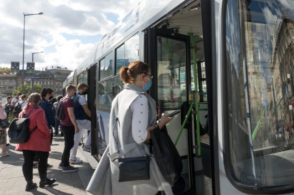 BUDAPEST, Oct. 5, 2020 (Xinhua) -- People wearing face masks take a bus in Budapest, Hungary on Oct. 4, 2020. Hungary registered 858 new COVID-19 cases on Sunday, raising the total cases of the country to 30,575, according to the governments coronavirus information website.
