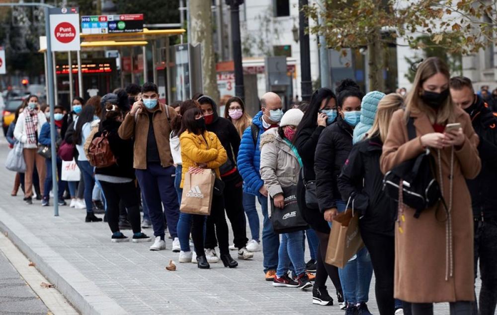 BARCELONA, DEC 11 (UNI):-Shoppers wearing face mask waiting in a queue outside a clothes store in Barcelona, Spain on Friday.