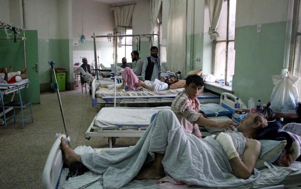 KABUL, Aug. 31, 2021 (UNI/Xinhua) -- Injured people at Wazir Akbar Khan hospital in Kabul, capital of Afghanistan. After the deadly suicide blast which killed some 170 Afghan people and 13 U.S. soldiers at the Kabul airport on Thursday, some survivors have raised the possibility that a number of Afghan people were actually killed by American fire amid the chaos and confusion instead of by bombing.