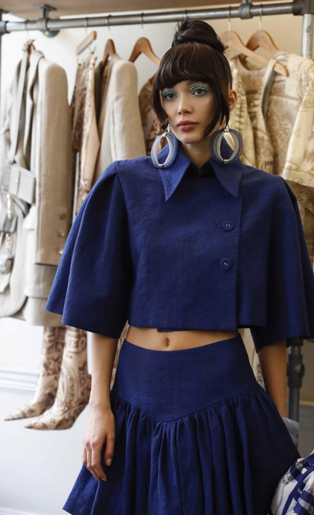 LONDON, Sept. 18, 2021 (UNI/Xinhua) -- Designer Paul Costelloe (C) poses for a photo with models during London Fashion Week in London, Britain, on Sept. 17, 2021.