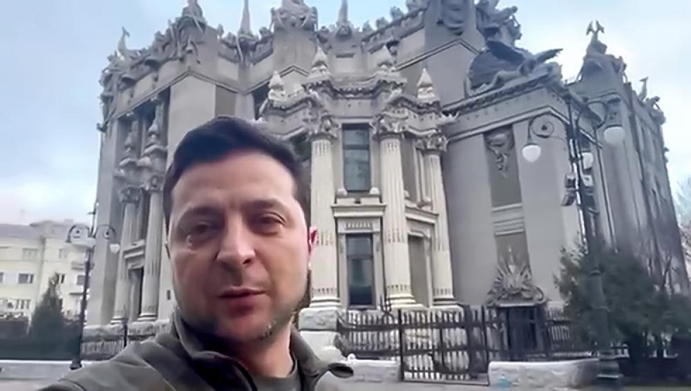 KYIV, FEB 26 (UNI):- Ukrainian President Volodymyr Zelenskyy recording video message on the third day of Russian invasion in Kyiv on Saturday.