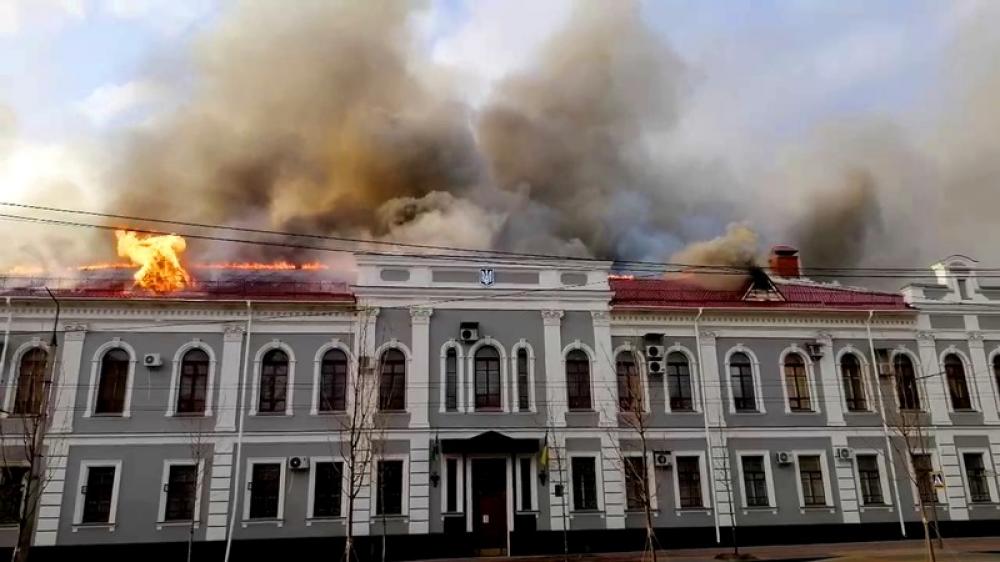CHERNIHIV, FEB 25 (UNI):- Russian forces destroyed a portion of Ukraine Intelligence building SBU in Chernihiv region of Ukraine on Friday.